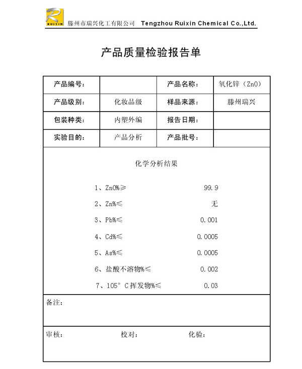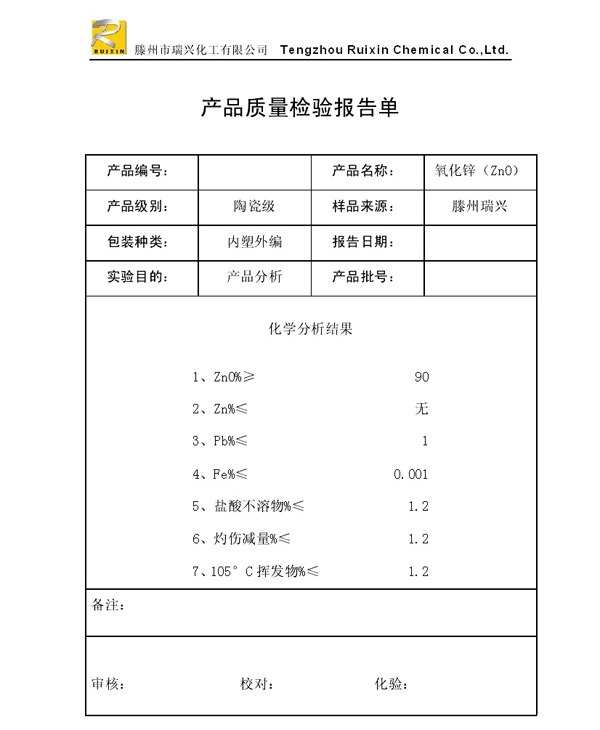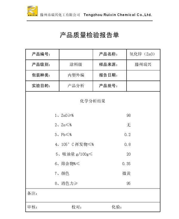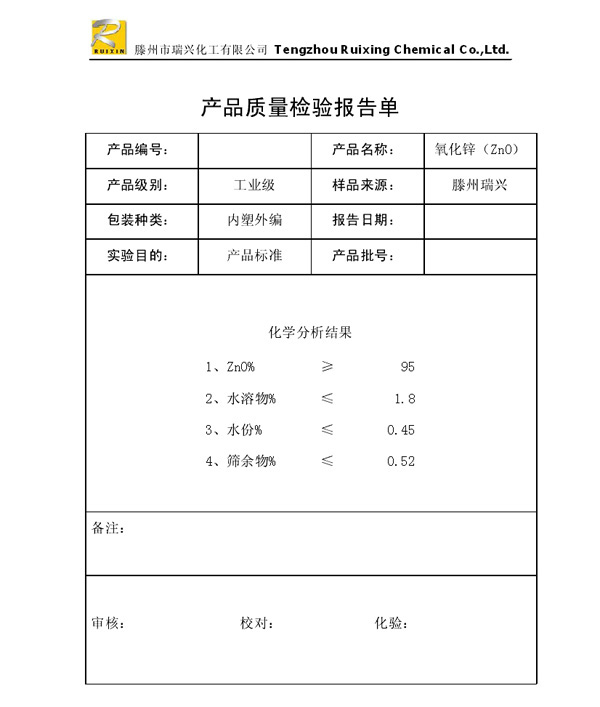瑞興化工有限公司是生產氧化鋅的重點企業(yè),于2008年通過ISO9001:2008質量管理體系認證。“瑞興”牌氧化鋅在國內擁有較大穩(wěn)定的市場,并遠銷東南亞、中東、中南美等國家和地區(qū),在國內外享有較高聲譽。